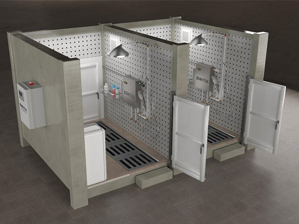 人员洗澡模块,可以通过人员自动喷淋,实现强制洗澡功能,从而确保养殖场区生物安全措施的落实。